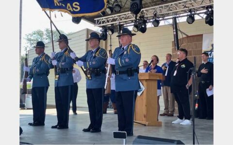 Kansas Highway Patrol Lieutenant Candace Brashear also shared remarks during the ceremony with the KHP Honor Guard presenting the colors at the start of the program.
