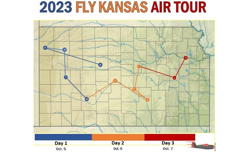 Topeka, Kan. — The Kansas Department of Transportation’s Division of Aviation is partnering with the Kansas Commission on Aerospace Education (KCAE) to host the Fly Kansas Air Tour from Thursday, Oct. 5, to Saturday, Oct. 7.