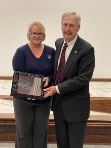 The Chamber Annual Meeting also celebrated the leadership of the Chamber by recognizing the 2023/2024 Chamber Board, and board members who completed their terms in August. Tiffani Floyd, 2022-2023 Chamber President received her Chamber’s Past President’s Plaque yesterday as well. The current Chamber President, Chad Hitt presented the plaque to her.
