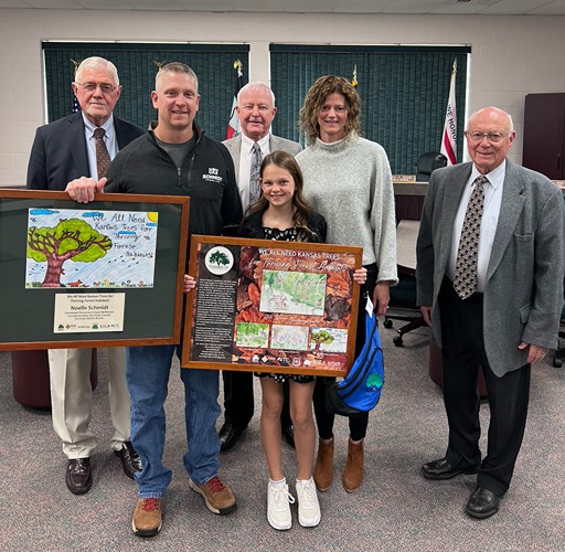 During the presentation of the proclamation by Mayor Tom Brown at Tuesday’s McPherson City Commission meeting, Director of Public Lands and Facilities Wayne Burns recognized Eisenhower Elementary School 5th grader Noelle Schmidt for her winning poster in the local Arbor Day Poster Contest.