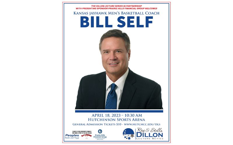 HUTCHINSON, Kan. – Naismith Hall of Fame coach and two-time national champion Bill Self will present the second Dillon Lecture of the 2023 Series. Self’s lecture will be held Tuesday, April 18 at 10:30 am at the Hutchinson Sports Arena.