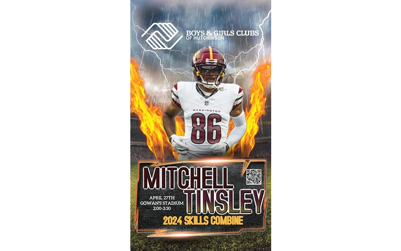 This year’s combine features Mitchell Tinsley, an American football wide receiver for the Washington Commanders of the National Football League. Tinsley’s football career began at our very own Hutchinson Community College! Boys & Girls Club is excited to bring Mitchell back to where it all began, Gowans Stadium.