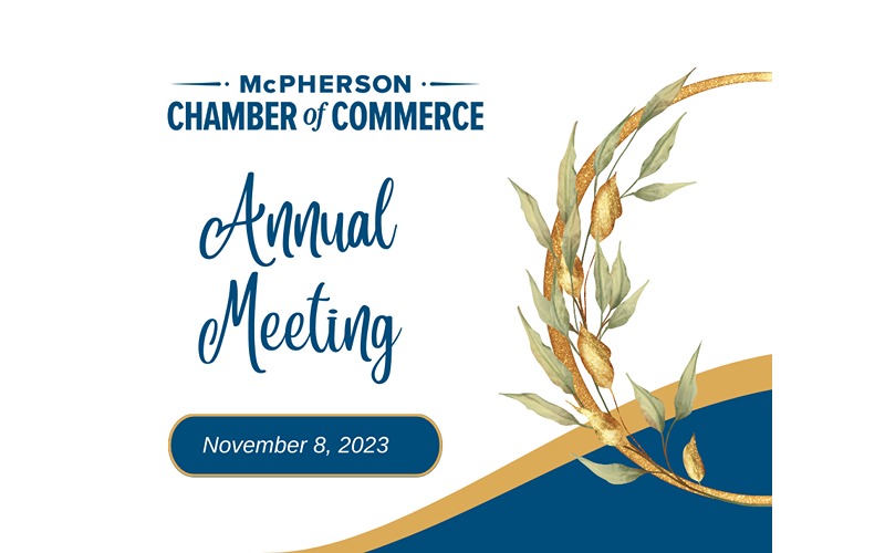 McPHERSON, Kan. — The McPherson Chamber of Commerce Annual Meeting will be on Wednesday, Nov. 8 from 11:30-1:00 at the McPherson Community Building.