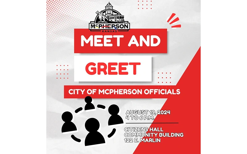 McPHERSON, Kan. — The City of McPherson is hosting a meet and greet session on Monday, Aug. 19 in Citizens Hall at the McPherson Community Building, 122 E. Marlin, McPherson.