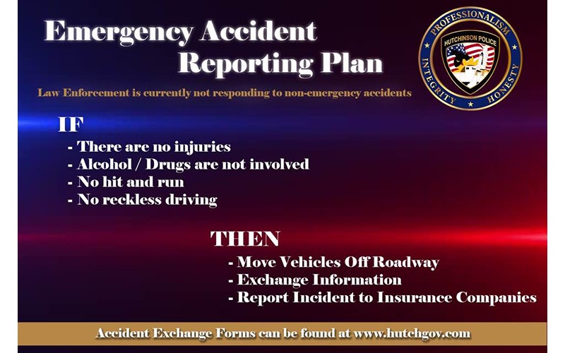If you are involved in a Motor Vehicle Accident within the city limits of Hutchinson, please refer to the guidelines and instructions in the image above.
