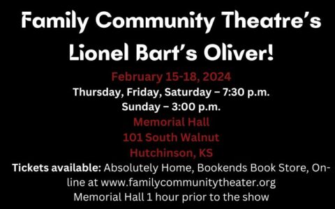 HUTCHINSON, Kan. — The Family Community Theatre is proud to present Lionel Bart’s Oliver!. The musical is adapted from the Charles Dickens classic, Oliver Twist. The plot of Dickens’s original novel is considerably simplified for the purposes of the musical, with Fagin being represented more as a comic character than as a villain, and large portions of the latter part of the story being completely left out. Many of the musical numbers will be familiar to the audience including – “Food, Glorious Food,” “Consider Yourself,” “You’ve Got to Pick a Pocket or Two,” “I’d Do Anything,” and “As Long as He Needs Me.”