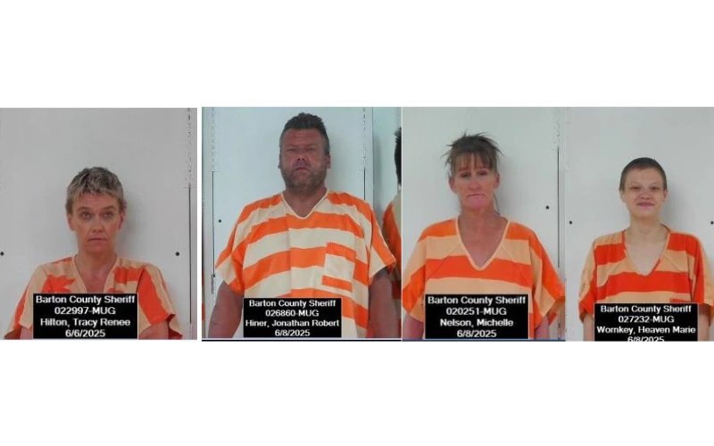 Nelson added to her problems by trying to bring contraband into the jail, which resulted in her having a $40,000 bond. Hiner and Wornkey have $10,000 bonds from this arrest, and Wornkey also has an additional bond for a Great Bend Municipal Court Warrant.