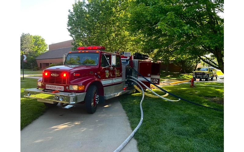HESSTON, Kan. — The Kansas State Fire Marshal has ruled Friday’s fire at Hesston College’s JD Charles Hall of Science and Arts to be accidental. However, damage from the fire that began in the space between the original wood ceiling and roof directly above a chemistry classroom has left the building unusable.