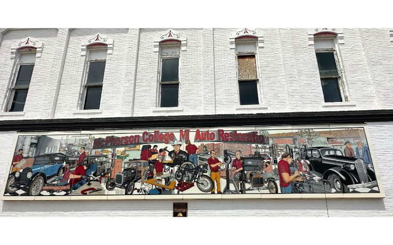The original artists of those murals, Matthew Richter and Naomi Ullem, gave Ryan permission to do this work. Ryan previously did a restoration project on the McPherson College mural, one of six in the downtown area.