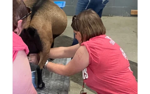 Following last year’s contest, the Fair Board made a leadership change in their team, with board member Sarah Green taking over. “We had a good outing, a great team, strong hands,” Green said after the final. The big milker on that team was board member Nick Kretzner of Bird City, with State 4-H Leader Sarah Maass, like Ketzner a first-time milker, also contributing.