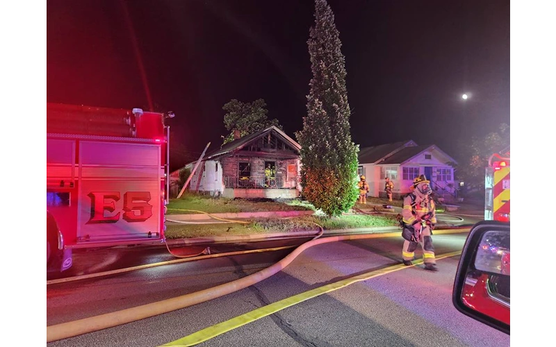 Division Chief Jesse Martin said the first arriving units in the 1400 block of North Monroe, called out at 1:21 AM, found heavy fire showing from the front porch on arrival which extended into the structure and attic space. Crews began their attack in the porch area before moving inside to complete extinguishment.