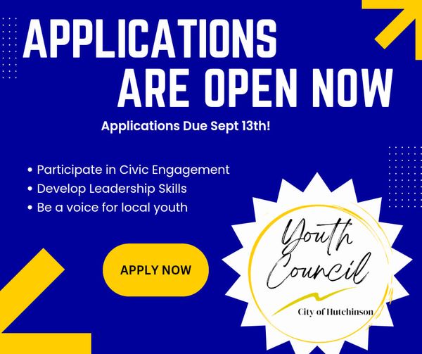HUTCHINSON, Kan. – The Hutchinson City Council is now accepting applications for students interested in participating in civic engagement, developing leadership skills, and being a voice for local youth. To qualify, you must be a USD 308 student entering the 7th-12th grades for the upcoming school year.