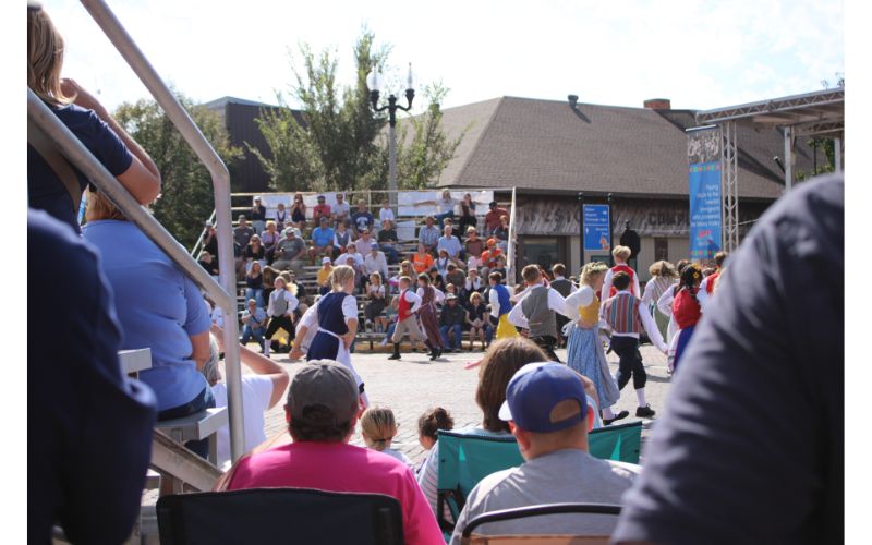 One way to experience the traditions at Hyllningsfest is by watching the Swedish folk dancers of all ages. Families come to support the dancers and watch them perform.