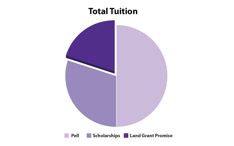 K-State is committed to fulfilling its land-grant mission by offering essential financial support to talented Kansas undergraduate students pursuing a world-class education at the university. The K-State Land Grant Promise assures that full-time, Pell-eligible undergraduates with a total household income of $70,000 or less will receive a total grant and scholarship aid package up to the equivalent cost of 15 credit hours of in-state tuition.