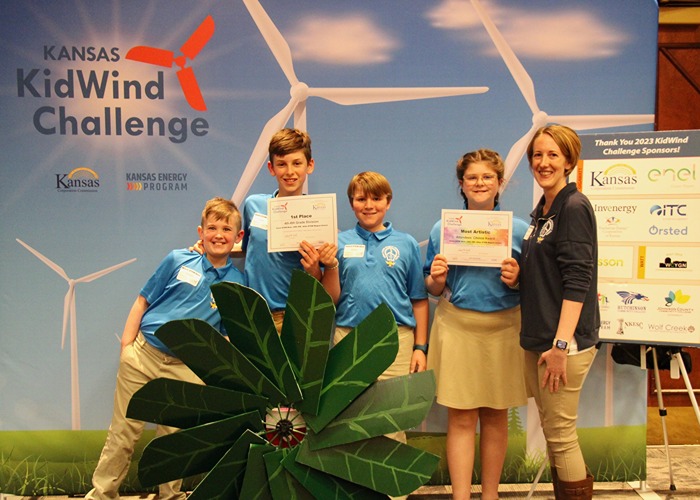 Last year, three Kansas teams earned honors at the National KidWind Challenge. Hutch STEM Blue from STEM Magnet School at Allen Elementary was named Elementary Division National Champions, Wind Chill from Dighton Middle School won the Innovator Award and Gerald La Turbina from Beloit Jr/Sr High School won the Judges Award.