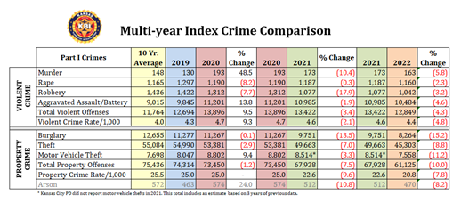 TOPEKA, Kan. – The Kansas Bureau of Investigation (KBI) has released the 2022 Kansas Crime Index Report. The report compiles crime statistics reported to the KBI by state and local law enforcement agencies throughout Kansas.