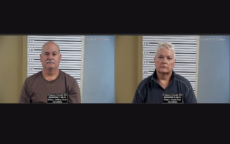 The Bates were arrested by the sheriff’s department without incident at their Larned residence on December 1, 2025, and released later that day after posting surety bonds.