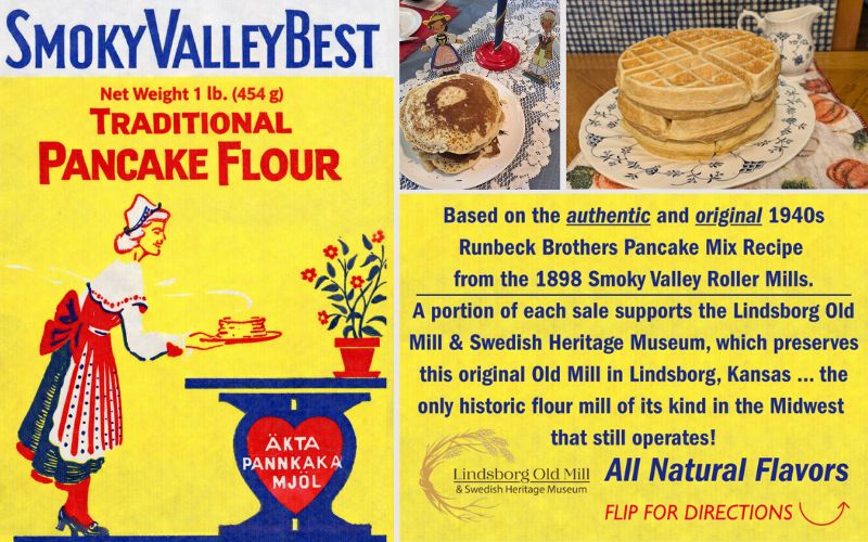 On March 21, the Museum will release “Smoky Valley Best Traditional Pancake Flour” to coincide with Lindsborg’s Swedish “Våffeldagen” waffle festival. It is based on an approximately 80-year-old recipe believed lost until only recently.