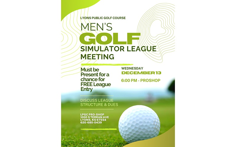 LYONS, Kan. — The Lyons Public Golf Course (LPGC) will be hosting a League Meeting for their upcoming Winter Simulator League on Wednesday, Dec. 13 at 6 p.m. in their Pro-Shop.