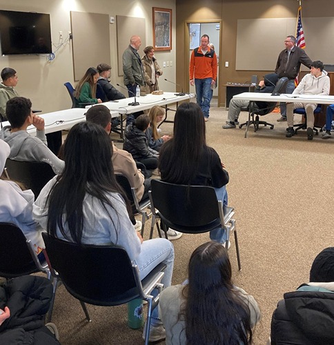 The students from Spain started their visit to Lyons by learning about the community and area from Lyons City Administrator Chad Buckley and Mayor Dustin Schultz.