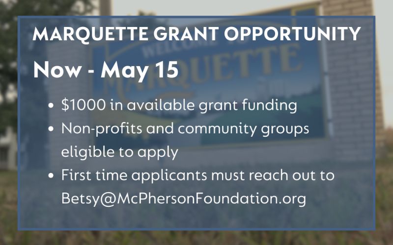 MARQUETTE, Kan. — The Marquette Community Foundation has announced that they are now accepting applications towards their annual community grants round now until May 15. For 2026 $1,000 will be made available.