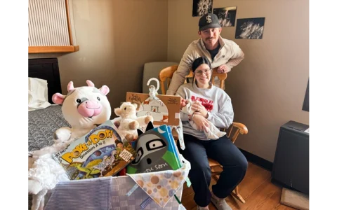 To celebrate the hospital’s first baby of the new year, McPherson Center for Health Volunteers presented the family with a special basket of goodies, including handmade items from the hospital’s sewing group, adding a personal and heartfelt touch to the celebration.