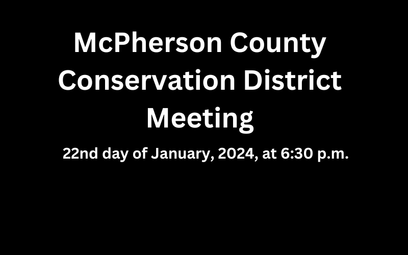 McPHERSON COUNTY, Kan. — To all qualified electors residing within the boundaries of the McPherson County Conservation District, notice is hereby given that pursuant to K.S.A. 2-1907, as amended, on the 22nd day of January, 2024, at 6:30 p.m. an annual meeting of the McPherson County Conservation District will be held at the 4-H building, 710 W. Woodside, McPherson, Ks.