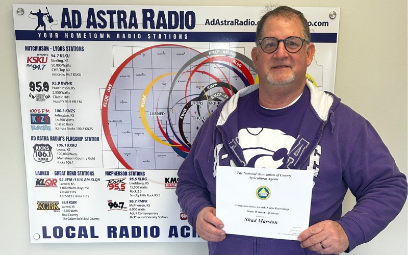 McPHERSON COUNTY, Kan. — Shad Marston, County Extension Agent with McPherson County K-State Research and Extension, recently won State in the Communications Award category from the Kansas Association of County Agricultural Agents. This was for his communication work/audio recordings on Ad Astra Radio!