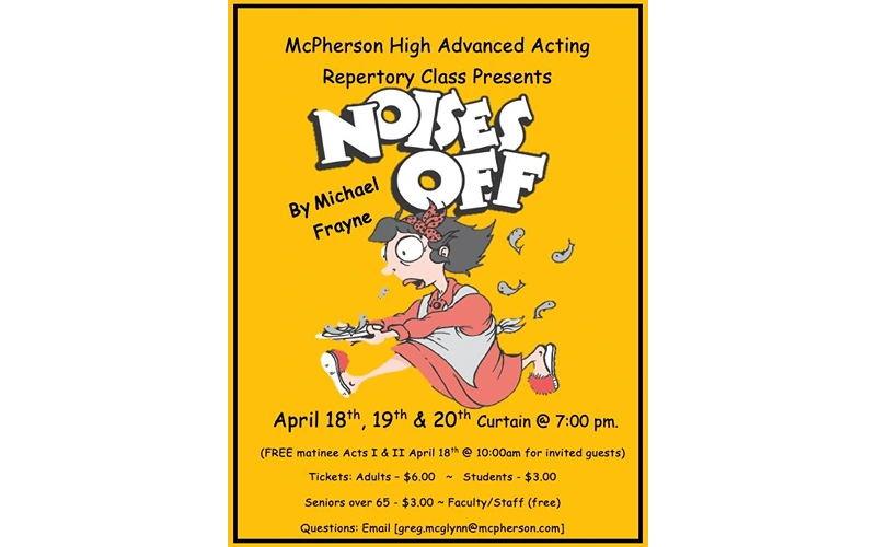 McPHERSON, Kan. — The first performance of the production of “Noises Off” from the McPherson High School Advanced Acting Repertory Class will be tonight at 7 p.m.