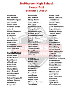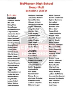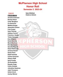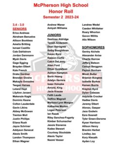 Congratulations to the McPherson High School students who made 2nd Semester Honor Roll for the 2023-24 school year!
