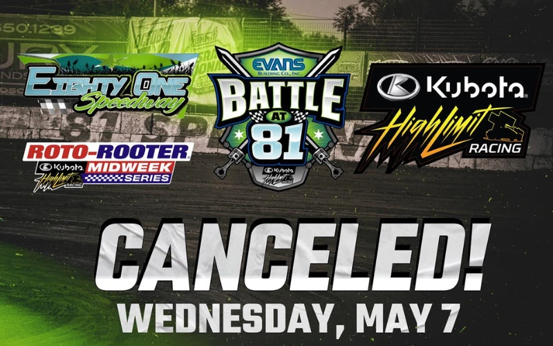 PARK CITY, Kan. — For the second-straight week and second-straight year, Mother Nature has rained on the parade of the Roto-Rooter Midweek Series and the debut of Kubota High Limit Racing at 81 Speedway, respectively.