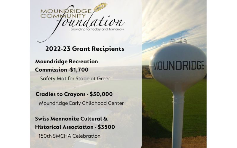 MOUNDRIDGE, Kan. — The Moundridge Community Foundation, which is an affiliate of the McPherson County Community Foundation has announced their grant recipients for 2023. They are the Moundridge Recreation Commission, Cradles to Crayons, and the Swiss Mennonite Cultural & Historical Association.