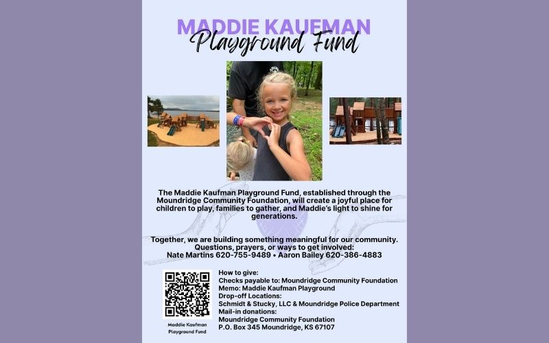 A fund has been established through the Moundridge Community Foundation for the Maddie Kaufman Playground Fund.