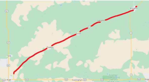 The Reno County segment will be on K-61 from the Pratt/Reno county line north to the south edge of the Ninnescah River bridge just north of Arlington.