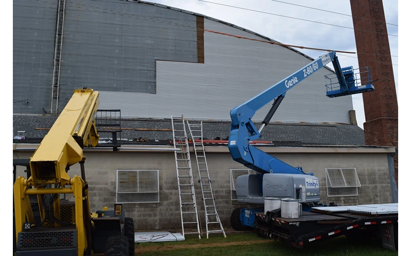 A roofing company was working on the main hangar near the terminal building, and two men were in an aerial bucket when it came in contact with the lines.