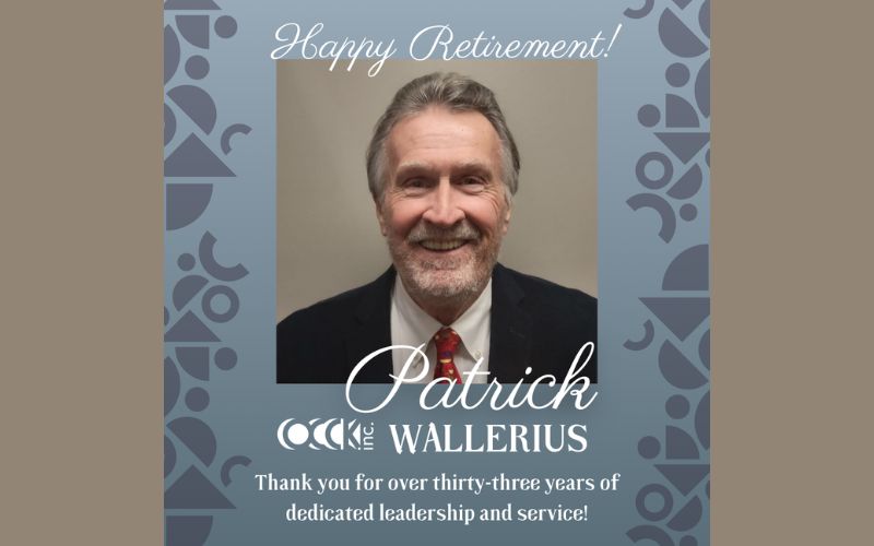 SALINA, Kan. — OCCK, Inc. announces the retirement of Patrick Wallerius, Vice President/Chief Financial Officer, after more than 33 years of dedicated service.