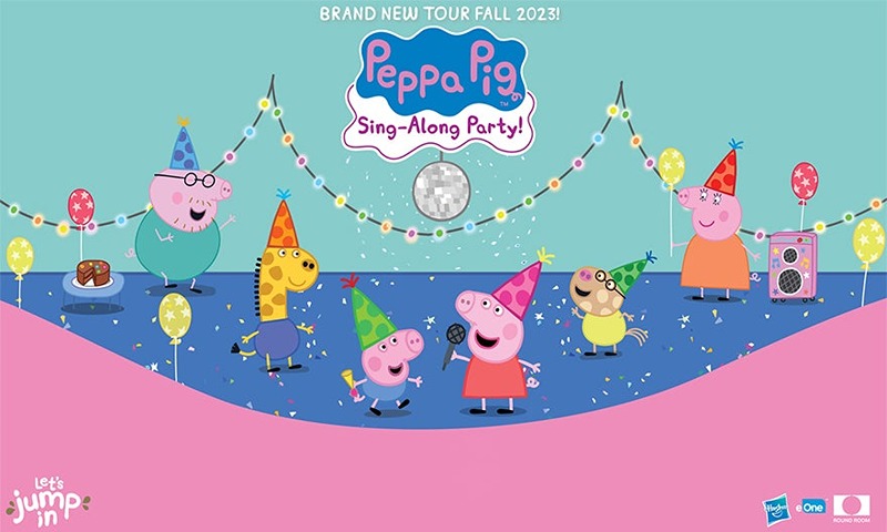 Peppa, George, Mummy Pig, and Daddy Pig will be singing along to some of their favorite songs, and they invite children and families alike to join in the fun. Dance, clap, and sing with Peppa and her family along with Pedro Pony, Suzy Sheep, and Gerald Giraffe. Blow up those balloons and get the disco ball ready as you and your family party along with Peppa in this 60-minute interactive sing-along adventure!
