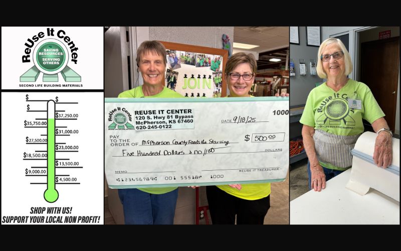 McPHERSON, Kan. — The ReUse It Center has announced the donations for the month of September. The following organizations received check donations this month: