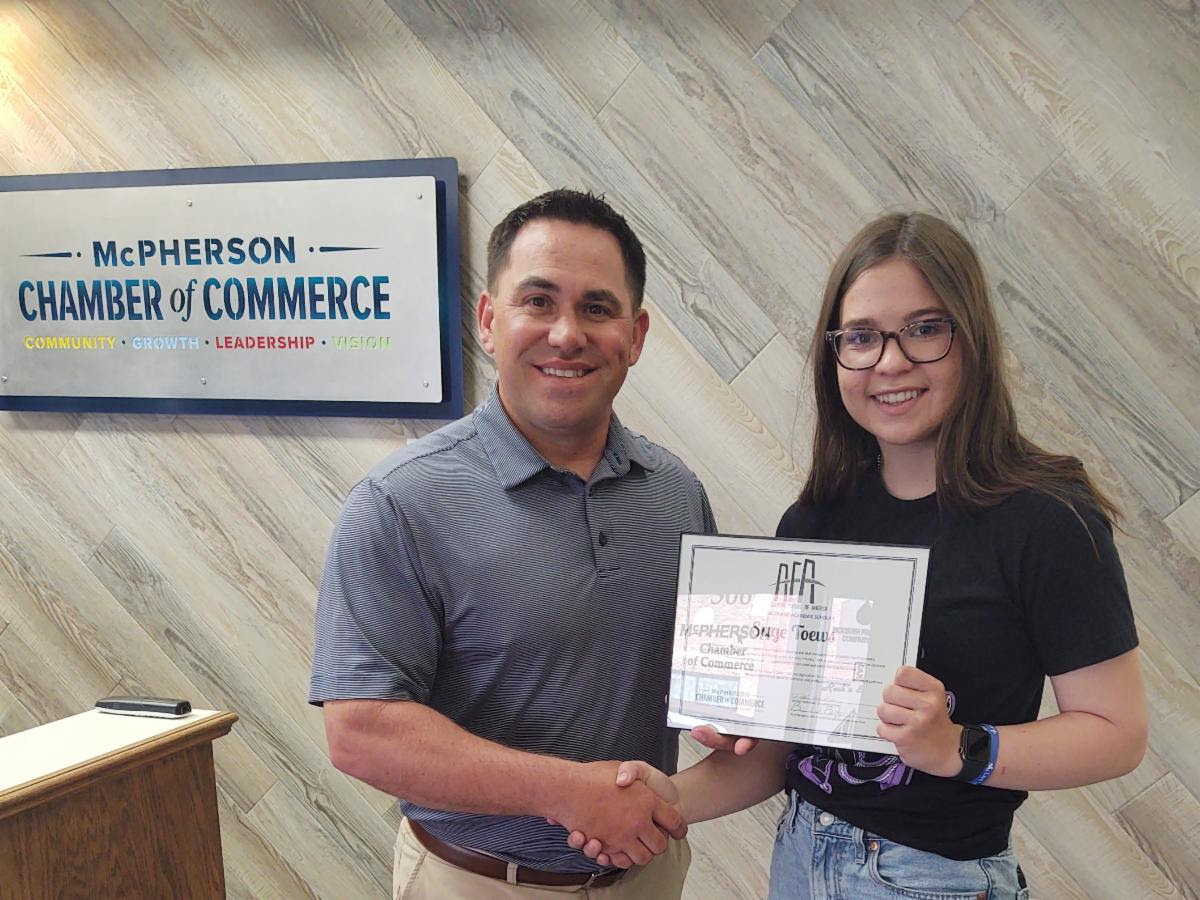 MCPHERSON, Kan. – The Agriculture Future of America (AFA) scholarships are made possible by the McPherson Chamber of Commerce Ag Committee in partnership with Agriculture Future of America. The Chamber’s Agriculture Committee has raised funds to support the AFA Leader and Academic Scholarship for McPherson County since 2000. Along with establishing an AFA scholarship fund at the McPherson County Community Foundation, the Ag Committee has awarded 35 full scholarships to date.