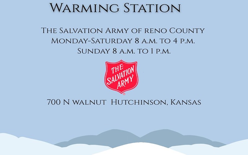 HUTCHISON, Kan. (Jan. 23, 2026) – The Salvation Army of Reno County is doing more than wishing people to be warm. Their warming center at 700 N Walnut will open beginning today when it opens at 8am. Their weekly warming center hours will be Monday thru Friday from 8am to 4pm, Saturdays from 8am to 4pm, and Sundays 8am to 1pm until the winter cold advisory is over.