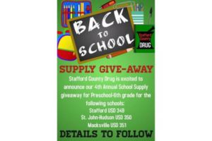 St. JOHN, Kan. — Stafford County Drug in St. John will be having their fourth annual supply giveaway for elementary students in Stafford County.