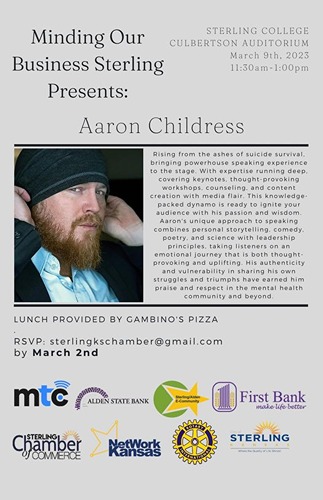STERLING, Kan. – The Sterling Chamber of Commerce announces “Minding Our Business” is back for 2023. The first of a four-part series will be held on Thursday, March 9th, from 11:30 a.m. to 1:00 p.m. at Sterling College’s Culbertson Auditorium.