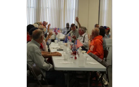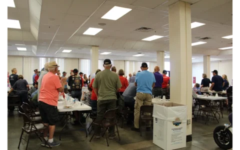HUTCHINSON, Kan. — Veterans from all over Kansas gathered together for the annual Veterans Breakfast in the Encampment Building on the Kansas State Fairgrounds Wednesday, Sept. 11, 2024.