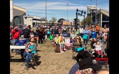 Sherry Treece with the Cosmosphere told Ad Astra news early on during their event they were thrilled with the turnout, with between 400 and 500 people on hand during the first hour of their three-hour viewing party. To get ready for the viewing the Cosmosphere prepared a special Planetarium show dealing with eclipses.