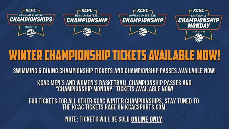 Multi-day championship passes will be available for the KCAC Swimming & Diving Championships, the KCAC Indoor Track & Field Championships, and the KCAC Men’s and Women’s Basketball Championships. Stay tuned to the KCAC Tickets page for details and prices for each Championship pass.