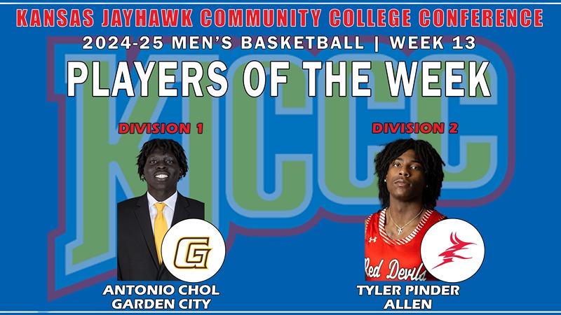 COLBY, Kan. (KJCCC.org) – Leading their teams to unbeaten weeks in Kansas Jayhawk Community College Conference play last week, Garden City Community College sophomore Antonio Chol and Allen Community College sophomore Tyler Pinder have earned KJCCC Men’s Basketball Player of the Week accolades for week 13.