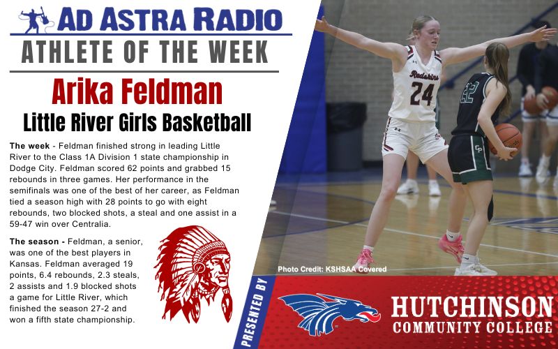 LITTLE RIVER, Kan. — Ad Astra Radio is proud to announce Little River High School senior Arika Feldman as this week’s Athlete of the Week, presented by Hutchinson Community College.