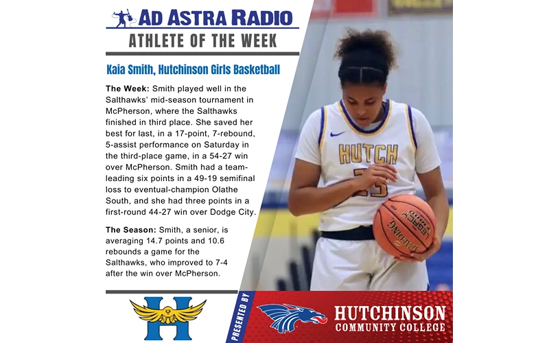 HUTCHINSON, Kan. — Congratulations to Ad Astra Radio’s Athlete of the Week Kaia Smith, Hutchinson High School senior on the girls’ basketball team.