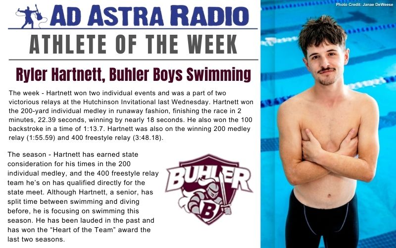 BUHLER, Kan. — Ad Astra Radio is proud to announce Buhler High School senior Ryler Hartnett as this week’s Athlete of the Week, presented by Hutchinson Community College.