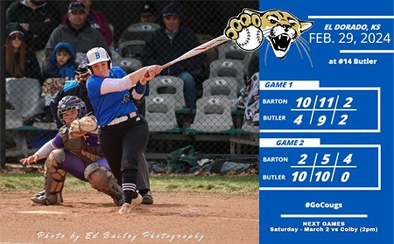 EL DORADO, Kan. (BartonSports.com) – The Barton Community College softball team picked up a big road win in the opener of Thursday’s doubleheader at 14th ranked Butler Community College but fell short of the sweep on a cold and windy day in El Dorado.